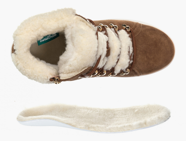 Съемная ортопедическая стелька с супинатором  с покрытием из натуральной шерсти поддерживает своды стопы и распределяет нагрузку на суставы.