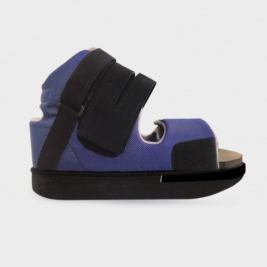 - Полностью раскрываемая конструкция и застежка «велкро», обеспечивающие легкое надевание обуви на послеоперационную повязку, гипс или на отекшую ногу