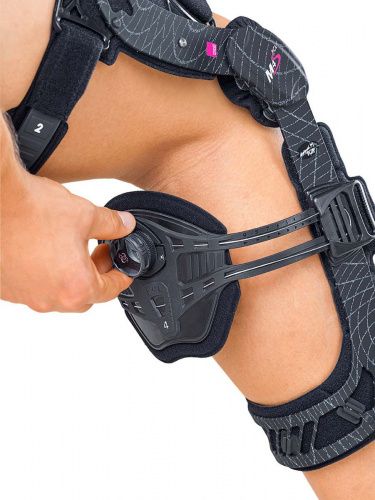 При разрывах и повреждениях крестообразной связки в период реабилитации независимо от методики лечения (оперативно или консервативно) необходимо уменьшить натяжение задней крестообразной связки. Обычно это достигается иммобилизацией коленного сустава, однако ортез M.4s PCL dynamic позволяет создать надлежащие условия для быстрого выздоровления без полного обездвиживания коленного сустава. С помощью специальной катушки натяжения можно выставить нужное положение голени относительно бедра, которое благодаря оригинальному дизайну ортеза будет сохраняться даже при сгибания коленного сустава. Полицентрический шарнир physioglide повторяет физиологическую биомеханику коленного сустава (одновременное вращение и скольжение) и обеспечивает идеальную посадку ортеза при движении. При необходимости проблемный сустав можно как иммобилизировать, так и ограничить его движения в пределах от 0° до 30° с шагом 10°, а от 45° до 120° с шагом 15°.