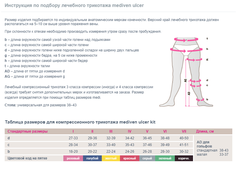 Гольф mediven ulcer легко надевать и снимать, не причиняя при этом боли. С парой гольфов mediven ulcer у пациента всегда будет возможность надевать чистый гольфы, а загрязнившийся стирать (желательно при температуре воды 95° C).